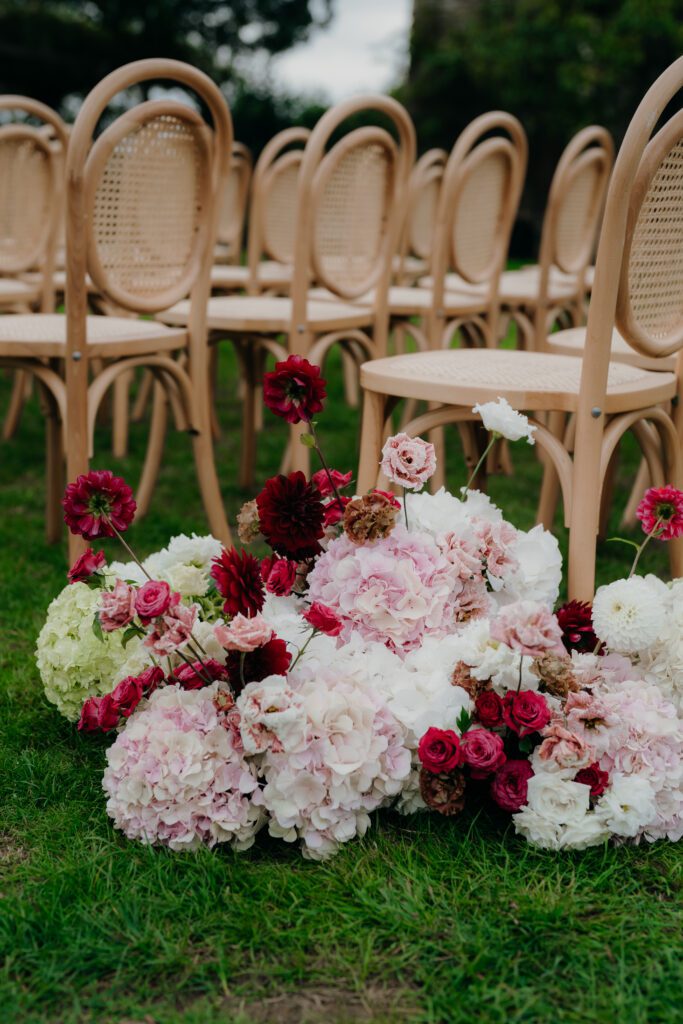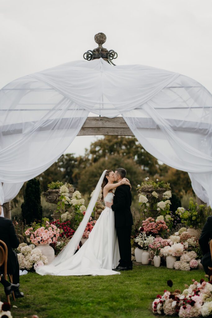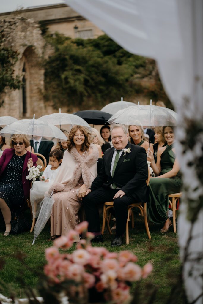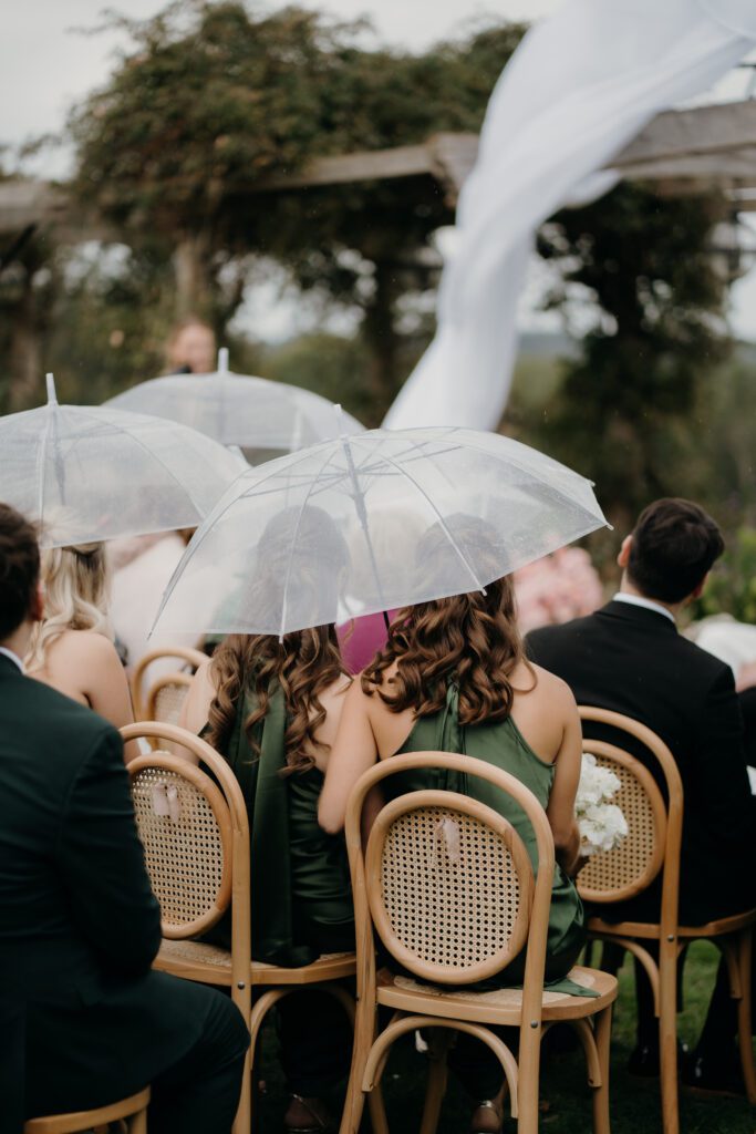 Umbrellas appeared during the ceremony, creating a scene that felt cinematic rather than compromised, an example of what happens when thoughtful planning meets a flexible, design-led mindset. Every contingency had clearly been considered, and it showed.